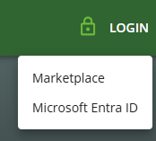 The LOGIN button appears on the right end of the Title bar when logged out of the Shield Guard portal. When clicked for the first time, a popup displays two login options: Marketplace or Microsoft Entra ID. Both options support single-sign-on (SSO), allowing you to log in seamlessly if you are already authenticated with the respective service. When logged in, the Welcome button appears instead.